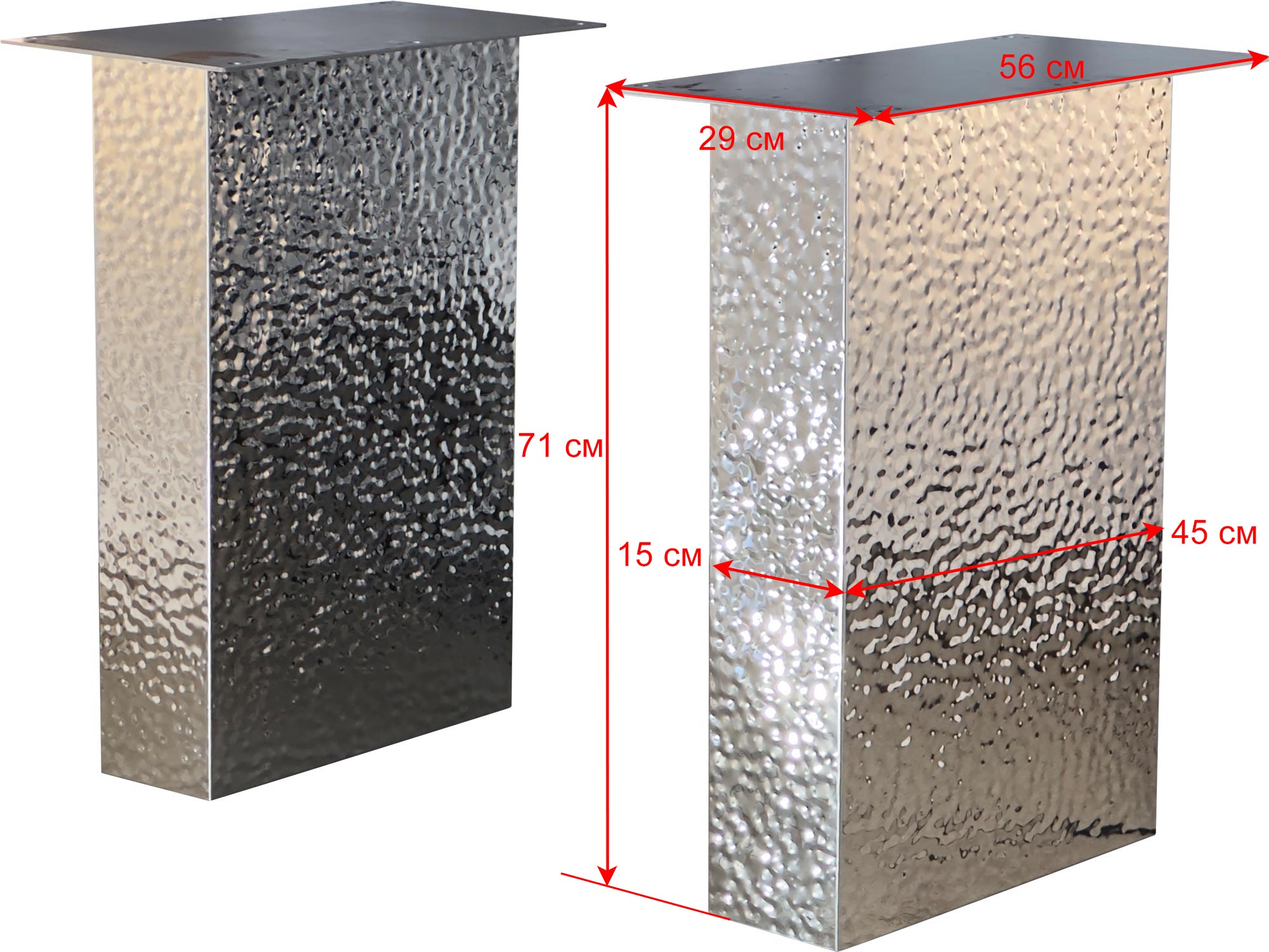 Подстолье из нержавеющей стали 2134EM Глубина: 15 см Длина: 45 см Высота: 72 см Все размеры указаны для одной позиции. В упаковке две штуки. Возможные варианты цвета: 2134EM - лаковое покрытие, цвет "серебро" 2135 ЕМ - лаковое покрытие, цвет - "под золото" (нитрид титана) Рекомендуемый размер столешницы: 2000х1000 Заказать подстолье для своего проекта в городе Тольятти, вы можете связавшись с нами любым удобным для вас способом - по телефону, по электронной почте или заполнив форму обратной связи на нашем сайте.